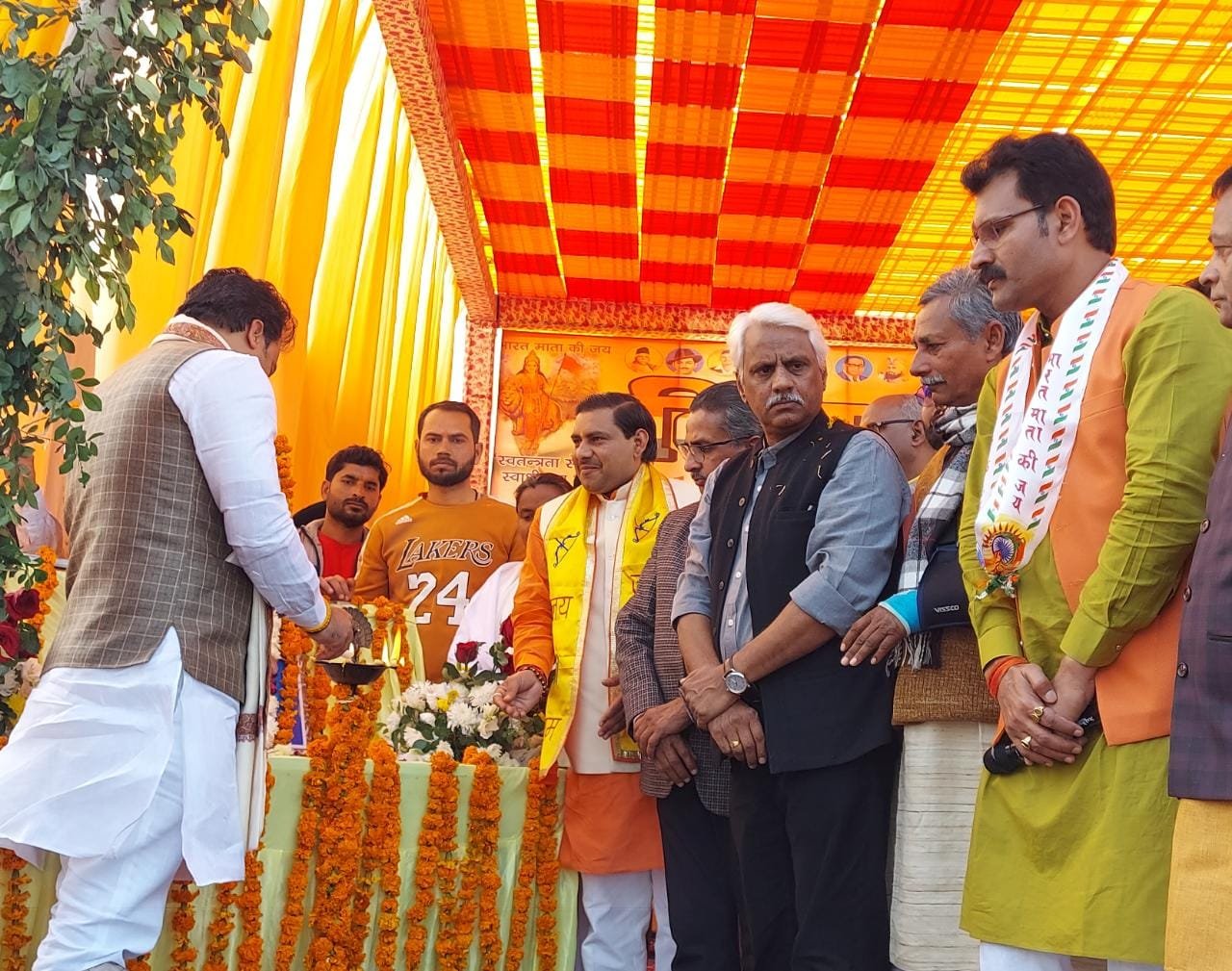 आयोजन समिति के संयोजक के तौर पर विमल द्विवेदी ने सभी अतिथियों का स्वागत किया व आगंतुकों का स्वागत किया। समिति द्वारा अतिथियों से शहीद परिवारों, स्वतंत्रता संग्राम परिवारों, महापुरुषों से जुड़े सामाजिक संगठनों व पूर्व सैनिकों को सम्मानित कराया गया। विशिष्ट अतिथि के रूप में शतरुद्र प्रताप सदस्य बोर्ड ऑफ गवर्नर नेहरू युवा केंद्र, प्रांत प्रचार प्रमुख डॉ.अशोक दुबे , विभाग प्रचारक आलोक, संरक्षक जितेंद्र, आशीष सिंह, मंच के जिलाध्यक्ष अजय त्रिवेदी, अवनीश तिवारी, शिव सेवक त्रिपाठी अविनाश द्विवेदी, मनीष अवस्थी, विक्रम द्विवेदी सहित सभी जनपद के सामाजिक संगठन के पदाधिकारी मौजूद रहे
