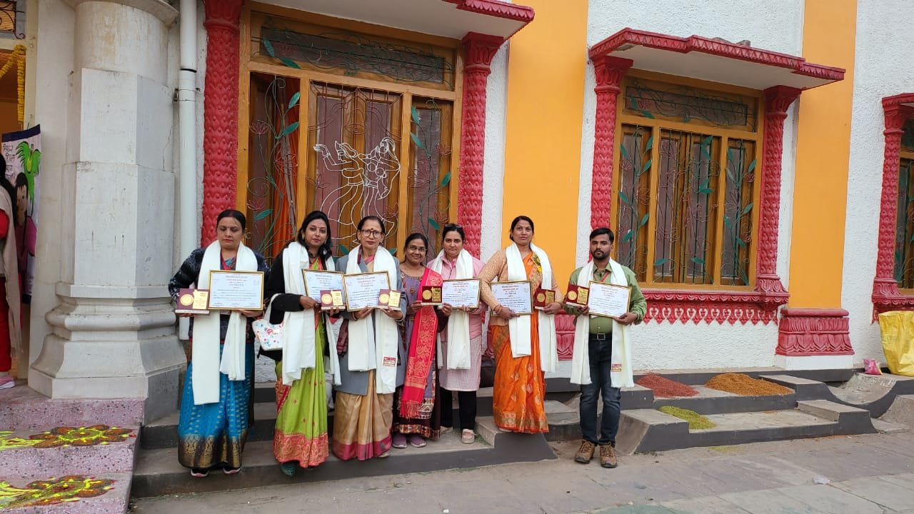 प्रयाग संगीत समिति प्रयागराज में मिशन शिक्षण संवाद के बैनर तले आयोजित हुई दो दिवसीय राज्य स्तरीय गुणवत्ता संवर्धन कार्यशाला में उत्कृष्ट कार्यो के लिए फ़तेहपुर जनपद के सात शिक्षकों को जिला बेसिक शिक्षा अधिकारी प्रयागराज श्री प्रवीण तिवारी व वाराणसी श्री राकेश सिंह ने अंगवस्त्र ,प्रशस्तिपत्र व स्मृति चिन्ह देकर सम्मानित किया ।