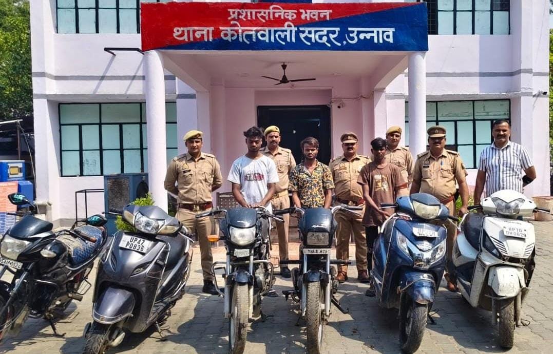 उन्नाव पुलिस को वाहन चोरी की वारदातों पर बड़ी सफलता हाथ लगी है। कोतवाली सदर क्षेत्र में सक्रिय वाहन चोर गिरोह के तीन सदस्यों को पुलिस ने गिरफ्तार किया है। इनके कब्जे से चोरी की तीन मोटरसाइकिल और तीन स्कूटी बरामद की गई हैं।