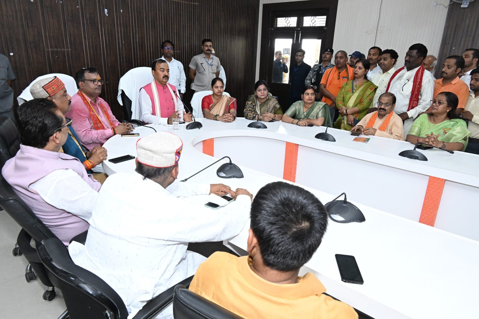 उपमुख्यमंत्री केशव प्रसाद मौर्य ने मां शीतला देवी अतिथि गृह,सयारा में जनपद के विभागीय अधिकारियों के साथ की बैठक