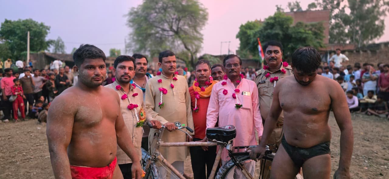 कौशांबी। पश्चिम शरीरा सरसवां ब्लॉक के सेंगरहा गांव में रविवार को आयोजित एक दिवसीय दंगल मेले का मुख्य अतिथि राजकुमार त्रिपाठी ने फीता काटकर मेले का शुभारंभ किया।पहला मुकाबला सैयद सरावा के पहलवान मनोज कुमार और तोता पहलवान पचामां के बीच मुकाबला हुआ जिसमें मनोज कुमार ने पटकनी देकर जीत दर्ज की दूसरा मुकाबला लाल बहादुर पहलवान कुंडा और कलीम पहलवान पहाड़ी के बीच मुकाबले में लाल बहादुर ने जीत लिया।दंगल चैम्पियन मुकाबला जाबिद अली पहलवान मेरठ का मुकाबला राहुल पहलवान टेवा के बीच हुआ करीब दोनों के बीच आधा घंटे संघर्ष के बाद राहुल पहलवान ने जीत कर दंगल चैम्पियन का खिताब अपने नाम दर्ज किया।जिन्हें आयोजक प्रदुम्न सोनी ने साइकिल देकर पुरस्कृत किया। इस दौरान मेला संचालक रामयश पाण्डेय,चौकी प्रभारी राजेंद्र सरोज,पृथ्वी मिश्र,शुभम् सोनी,खुशी मिश्रा,भरत सोनी,संजय शुक्ला,विजय सोनी आदि मौजूद रहे।संवाद