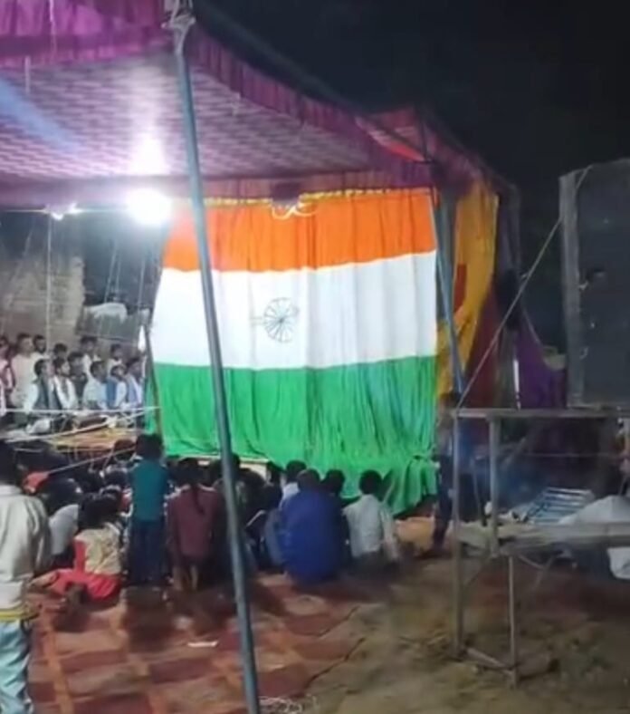 उन्नाव जिले के सफीपुर क्षेत्र में आयोजित एक रंगारंग कार्यक्रम के दौरान राष्ट्रीय ध्वज के अपमान का मामला सामने आया है। जमाल नगर में हुए इस कार्यक्रम के मंच पर तिरंगे को पर्दे के रूप में लगाया गया, जिसके सामने बार बालाओं द्वारा डांस किया गया। इस दृश्य का वीडियो सोशल मीडिया पर तेजी से वायरल हो गया, जिसके बाद लोगों में आक्रोश फैल गया। भारतीय ध्वज संहिता के अनुसार तिरंगे का इस तरह प्रयोग सख्त रूप से प्रतिबंधित है। कार्यक्रम आयोजकों की लापरवाही से राष्ट्रीय प्रतीक का अपमान हुआ है, जिससे आमजन में नाराजगी है। मामले की जानकारी मिलते ही स्थानीय लोगों ने प्रशासन से सख्त कार्रवाई की मांग की है। वहीं, पुलिस और प्रशासनिक अधिकारी वीडियो की जांच में जुट गए हैं। यह घटना न केवल ध्वज संहिता का उल्लंघन है, बल्कि देश की अस्मिता के साथ खिलवाड़ भी मानी जा रही है।