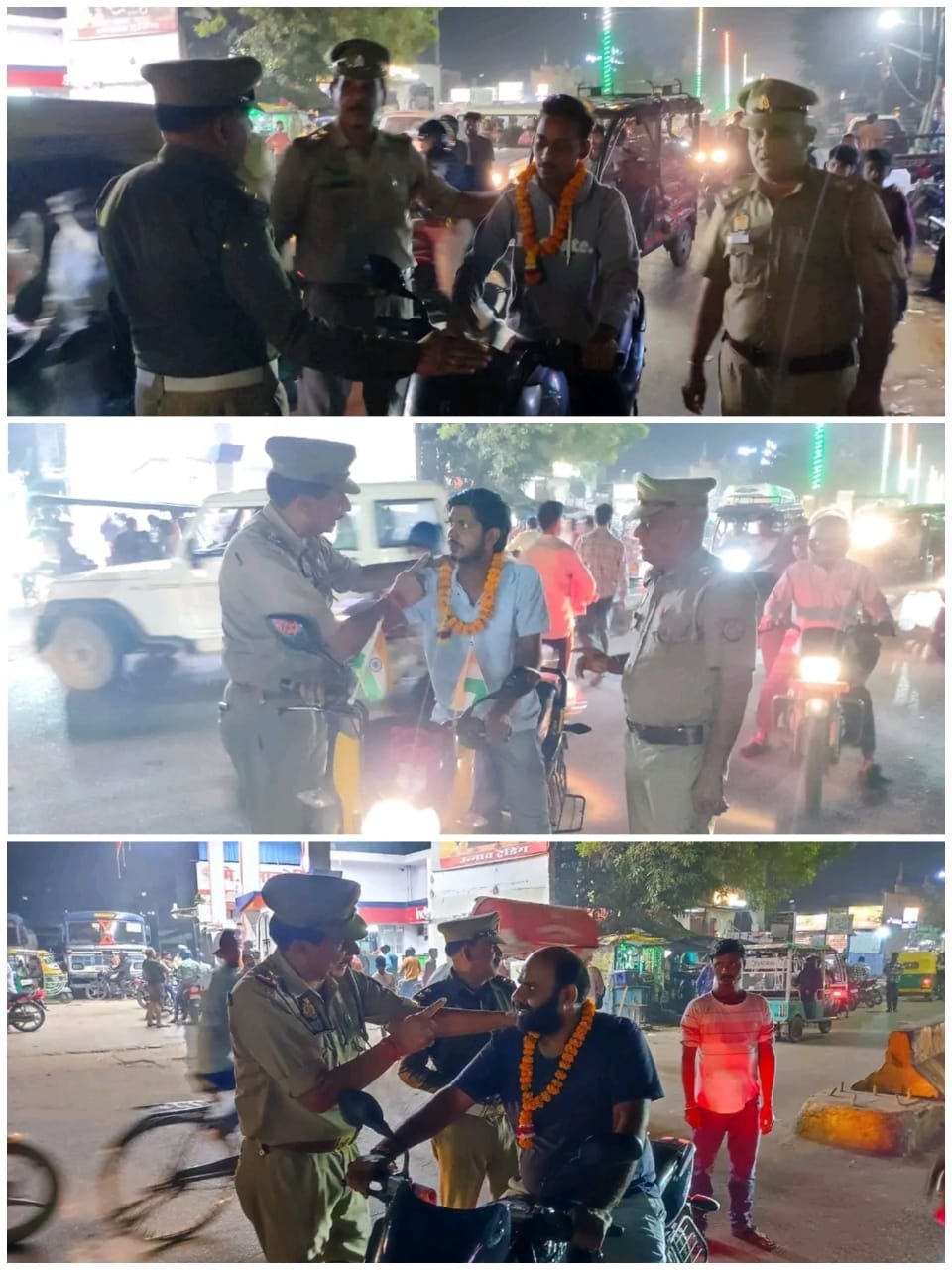 अभियान के तहत पुलिस टीम ने बिना हेलमेट चालकों को रोककर पहले नियम पालन की अपील की और फिर फूलमाला पहनाकर सम्मानित किया। यह पहल लोगों में सकारात्मक संदेश देने के उद्देश्य से की गई ताकि लोग दंड से नहीं, बल्कि जागरूकता से नियमों का पालन करें।
