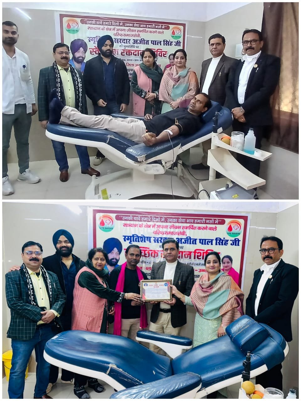 लाइफ सेवर्स संस्था द्वारा जिला अस्पताल स्थित ब्लडबैंक में स्वर्गीय सरदार अजीत पाल सिंह की पुण्यतिथि के अवसर पर एक भव्य स्वैच्छिक रक्तदान शिविर का आयोजन किया गया। मानव सेवा को समर्पित इस शिविर का शुभारंभ वरिष्ठ चिकित्सक डॉ. संजय मिश्रा एवं समाजसेविका निम्मी अरोड़ा द्वारा संयुक्त रूप से फीता काटकर किया गया।