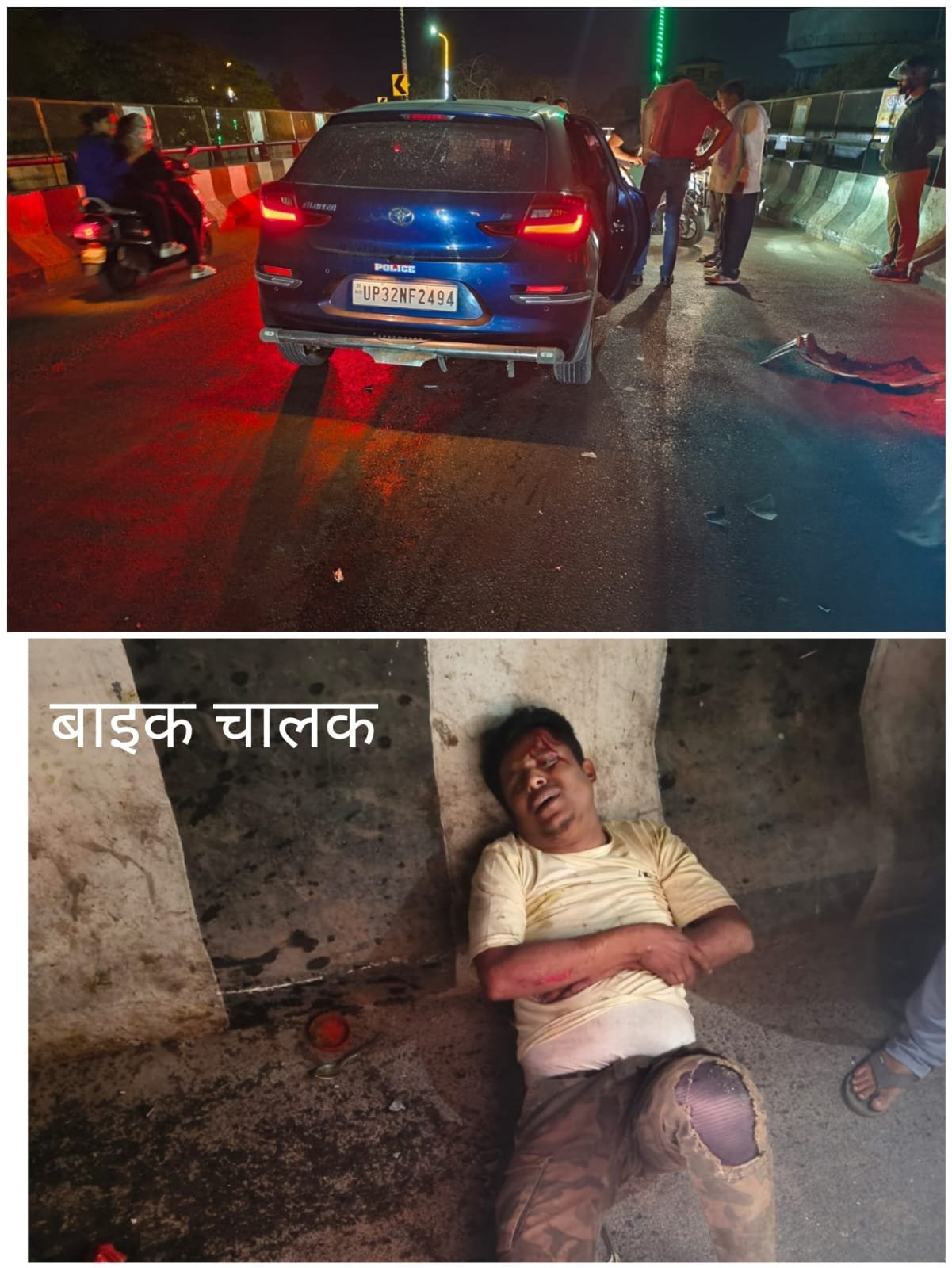 बताया जा रहा है कि कार का नंबर UP32NF2494 है, जिस पर पुलिस का लोगो भी लगा हुआ है। हादसे के बाद कार चालक मौके से भागने की फिराक में था, लेकिन वहां मौजूद लोगों ने पीछा कर उसे एसपी ऑफिस के पास रामजी नमकीन के सामने पकड़ लिया। इसके बाद लोगों ने पुलिस को सूचना दी।
