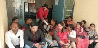 अपनी मांगों को लेकर संविदा कर्मियों ने सी0एच0सी0 गेट पर धरना...