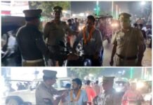 यातायात माह के तहत उन्नाव पुलिस का अनूठा अभियान, बिना हेलमेट चालकों को किया...